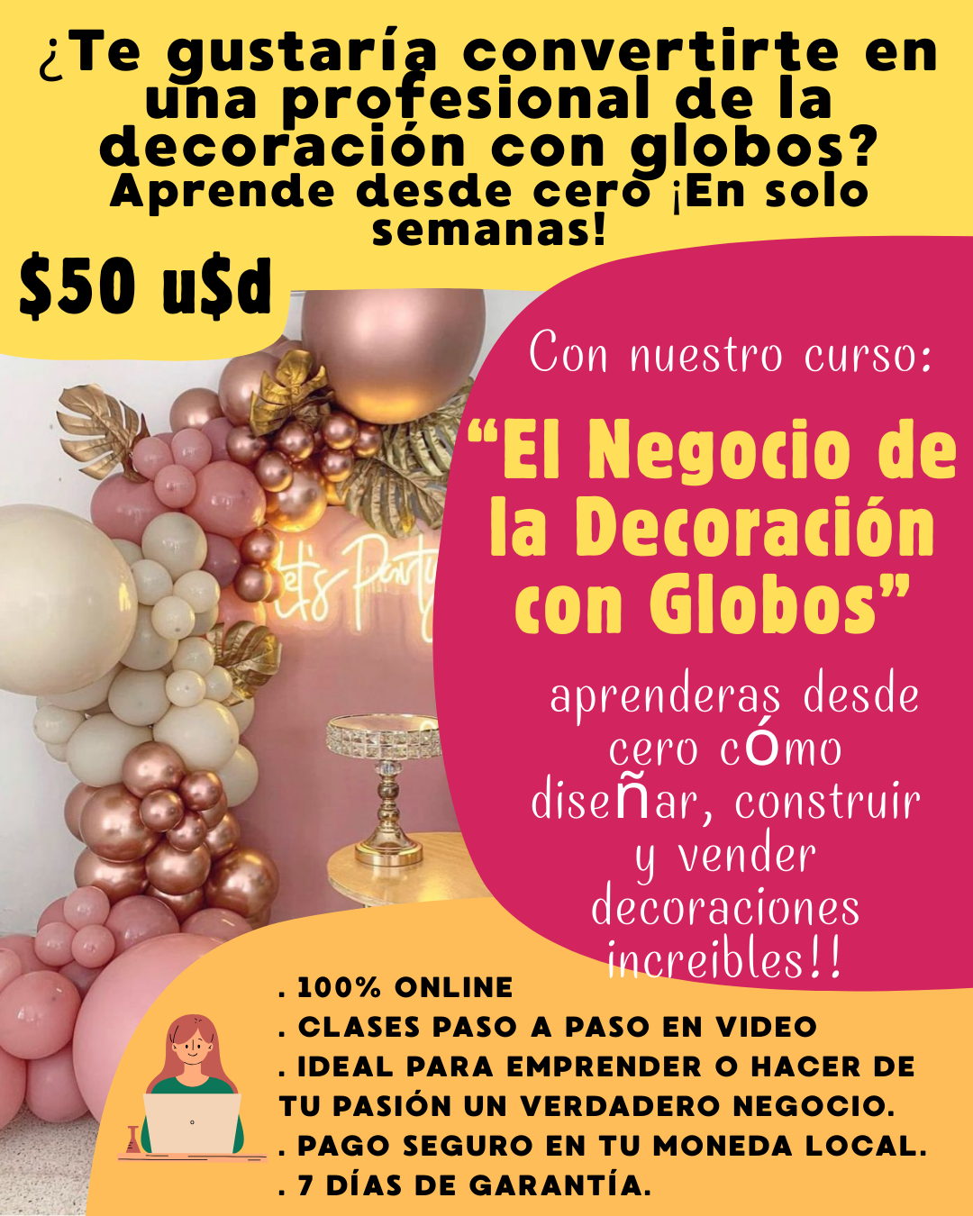 Miles de mujeres como vos empezaron con una sola clase de globos… y hoy tienen su propio negocio de decoración.