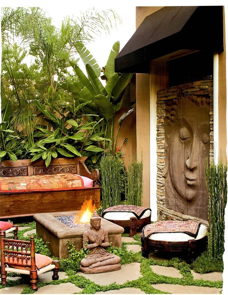 Zen / Oriental: uso de bambú, piedras, plantas como bambú de la suerte, ficus o musgos. Espacio armónico y equilibrado para conectar con la calma.